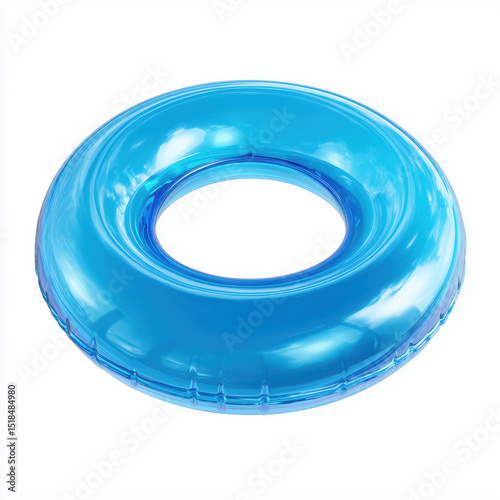 Radiant Blue Inflatable Pool Ring for Summer Fun , PNG isolated cut out image