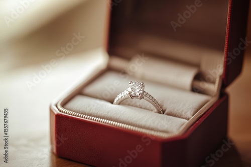 Radiant Bridal Ring Displayed Elegantly in a Stylish Box on a Table