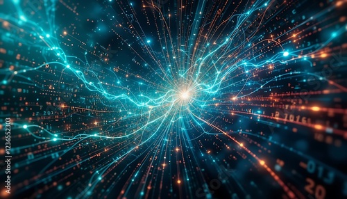 Radiant Energy Stream: A Digital Nebula in Teal and Orange