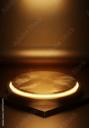 Radiant golden platform illuminating a presentation space with shimmering textures elegance