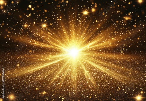 Radiant Golden Sparkle Background with Shimmering Light Beams and Glittering Particles for Festive and Elegant Themes