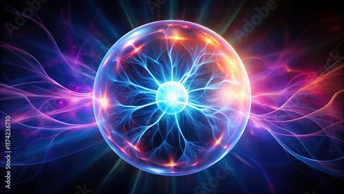 Radiant plasma sphere, a digital fantasy, bursts with magical light, its energy both spiritual and cosmic.