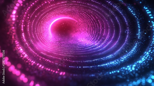 Radiant ripple effects forming dynamic financial patterns, concentric waves glowing with neon gradients of blue and purple, vibrant data points scattered across the ripples,