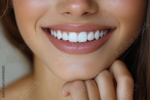Radiant Smile: A Close-Up of a Woman's Joyful Expression and Thoughtful Gesture