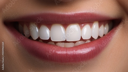 Radiant Smile of Perfect Dental Health - Close-up Portrait of Woman with Gleaming White Teeth in Soft Lighting for Dental Care Concept.