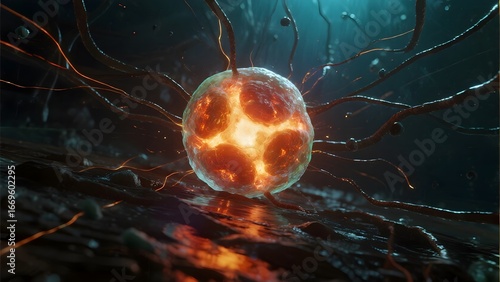 Radiant Spherical Entity with Tentacle-like Projections Emitting Light