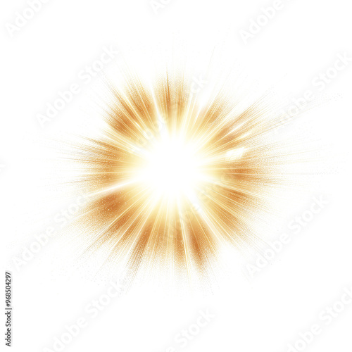 Radiant Sunburst Light Overlay with Golden Rays on white and transparent background.