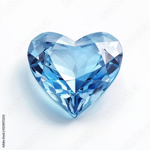 radiant topaz gemstone in a light sky-blue shade, cut in a heart shape, centered on a white background