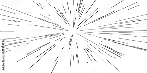 Radiating from the centre of thin beams, lines. Abstract explosion, speed motion lines from the middle, radiating sharp. Dynamic style, sun burst, star burst sunshine Vector