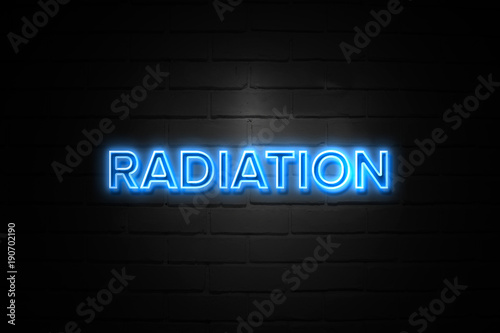 Radiation neon Sign on brickwall