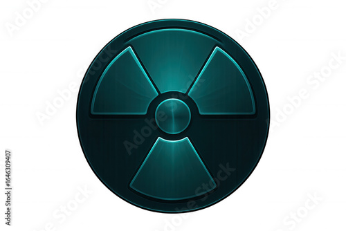 Radioactive hazard symbol glowing teal, symbolizing nuclear danger with transparent background, ideal for warning graphics