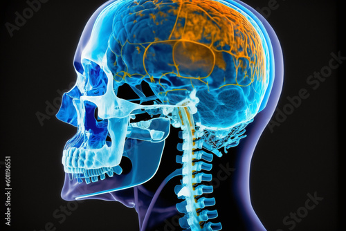 Radiography or X ray of head scan of a human skull with brain. Ai generated