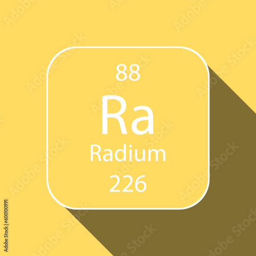 Radium symbol with long shadow design. Chemical element of the periodic table. Vector illustration.