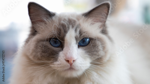 Ragdoll female cat on a cat tower