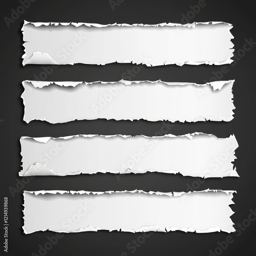 Ragged paper strips forming torn ribbons. A modern set of abstract paper sheets