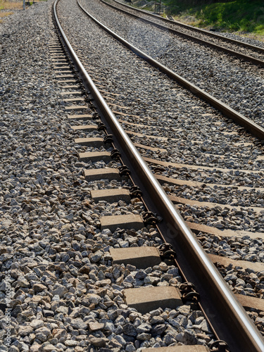 Raíles , siletas con clavo y traviesas de maderaen una via de tren