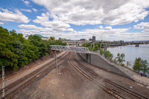 Railroad tracks in the industrial area. High quality close up picture for download.