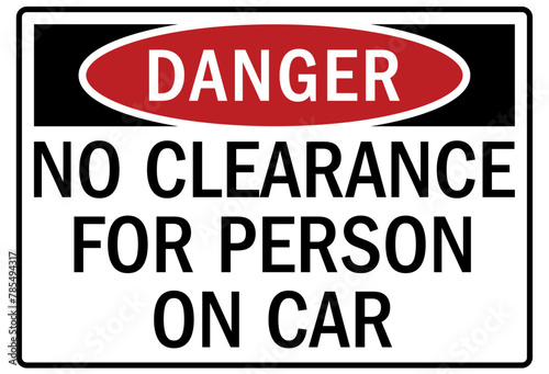Railroad warning sign no clearance for person on car