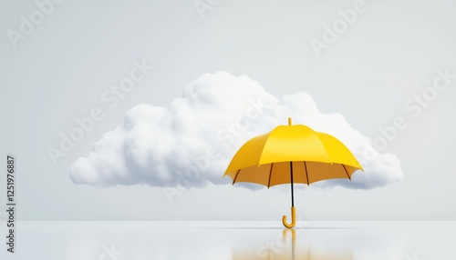 Rain Clouds And A Yellow Umbrella Against A White Background. Perfect For Rainy Season-Themed Cover, Greeting Card, Brochure. Beautifully Rendered Image.