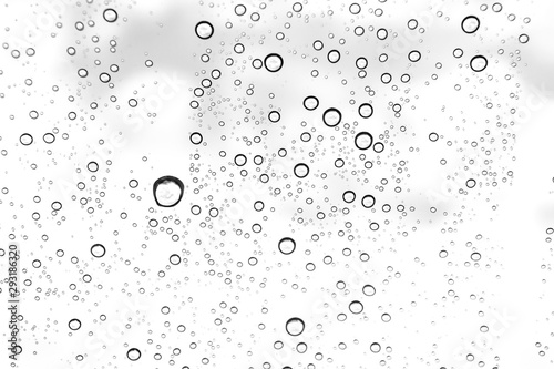 Rain drops on window glasses surface Natural Pattern of raindrops. Natural pattern of raindrops on white background for your design.