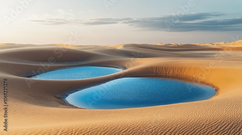 Rain is creating two ponds in the sand dunes of the desert