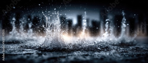 Rain splash on dark city street