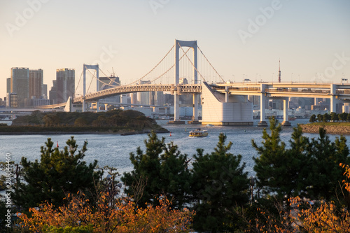 Rainbow bridge, suspension bridge from Tokyo to Odaiba, Japan.