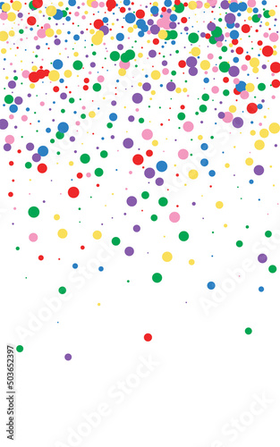 Rainbow Circle Background White Vector. Polka Decor Texture. Colorful Carnaval. Multicolored Element Congratulation. Confetti Wedding Frame.
