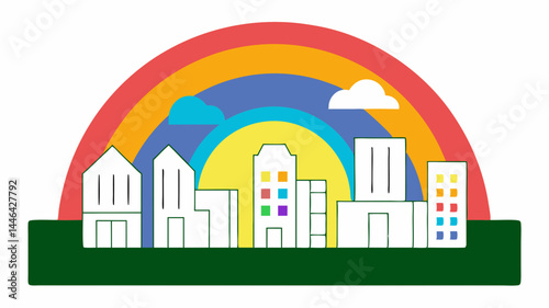 Rainbow city skyline silhouette in minimalist style
