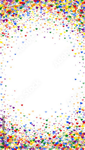 Rainbow colored scattered hearts. LGBT valentine