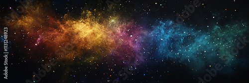 rainbow dust powder particles explosion, on black background for overlay