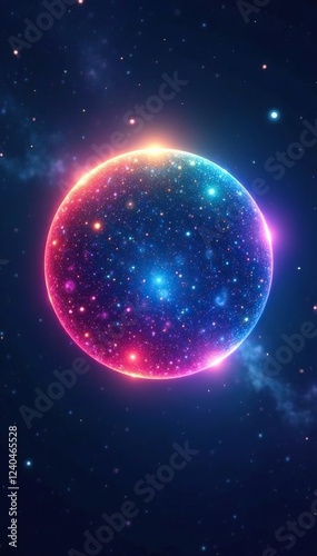 Rainbow glowing orb suspended in an infinite blue space, cosmic, vast