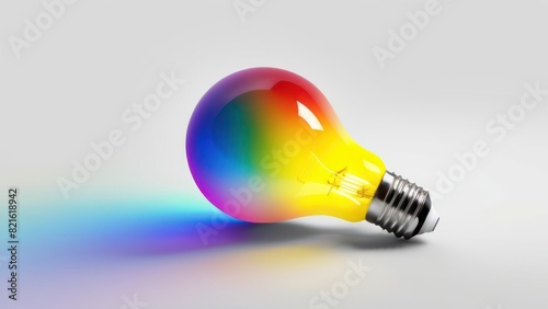 Rainbow gradient light bulb on a smooth white background.