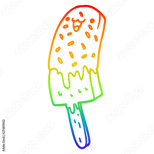 rainbow gradient line drawing cute cartoon happy ice lolly