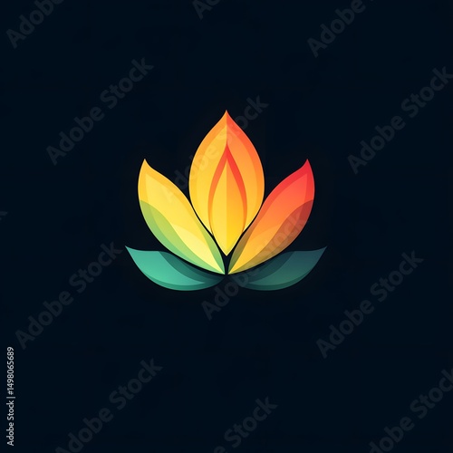 Rainbow Gradient Lotus Flower Logo - Serenity, Meditation, and Wellness Design