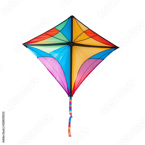 Rainbow Kite with Colorful Panels and Tail Isolated on Transparent Background.