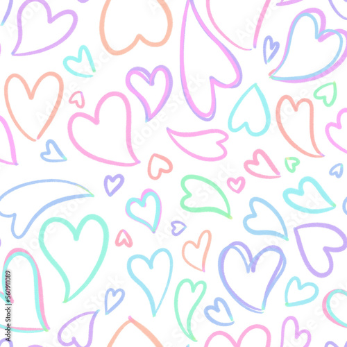 Rainbow line Heart Background, pattern, Hand drawn in doodle style.