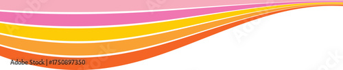 Rainbow lines header for retro banner. Groovy abstract 70s curved border for poster. Swirl playful orange and pink stripe. Dynamic divider and separator shape