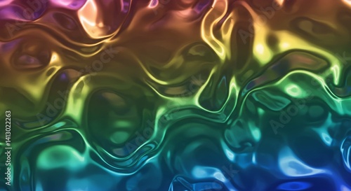 Rainbow Metallic Liquid Abstract Design - Symbolizing fluidity, vibrancy, energy, transformation, and harmony, this showcases a dynamic, iridescent metallic liquid texture with a rainbow gradient