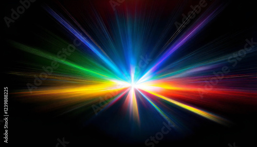 黒の背景に虹色のプリズムライト。虹色の光。太陽光のプリズム効果の抽象的な屈折。Rainbow prism light on a black background. Rainbow light. Abstract refraction of sunlight prism effect.