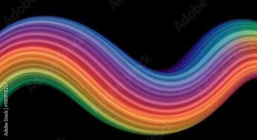 Rainbow Wave Abstract: Vibrant, multicolored stripes flow dynamically in a wave pattern against a stark black background. The image is a celebration of color and movement.