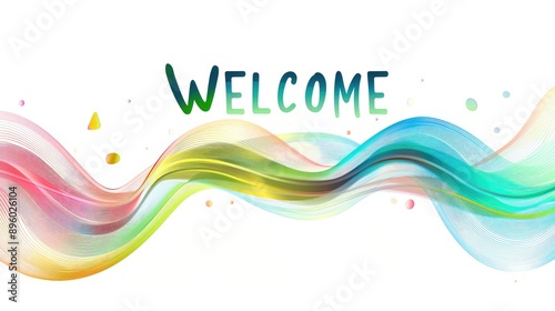 rainbow Welcome greeting text on white background with colorful waves and swirling lines, events, websites, greetings, hospitality industry and promotional materials