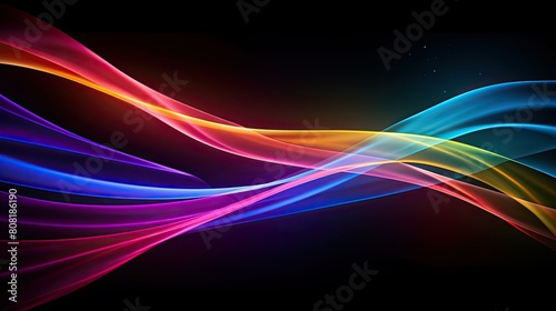 Rainbow-colored light streaks against a dark background, creating a dynamic and energetic atmosphere