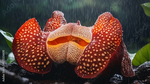 Rainforest flower, rain, close-up, exotic bloom, nature photography, botanical.