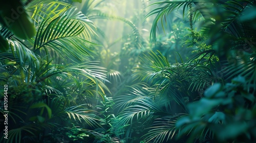 Rainforest with dense foliage and exotic wildlife, close up, vibrant ecosystem, ethereal, blend mode, tropical backdrop