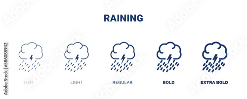 raining icon. Thin, light, regular, bold, black raining, water icon set from ecology collection. Outline vector isolated on white background. Editable raining symbol can be used web and mobile