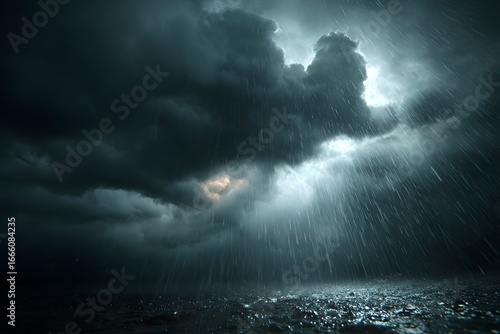 Rainstorm features dark, ominous clouds with heavy raindrops in a striking studio setup.