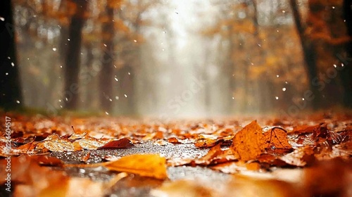 Rainy Autumn Path, Fallen Leaves