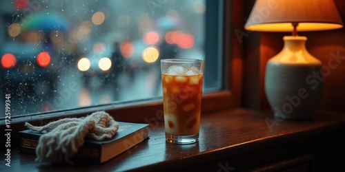 Rainy Day Cafe Scene with Milk Tea and Cozy Atmosphere by Window