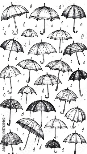 Rainy Day Umbrella Sketch, Paper Illustration